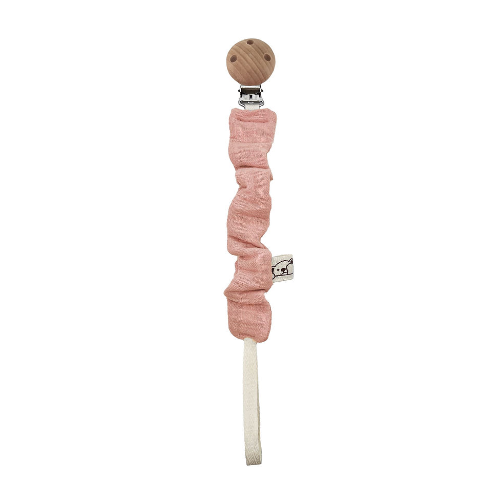 Realizzato in mussola di cotone certificata e completato da una clip in legno naturale, unisce sicurezza, comfort e stile.